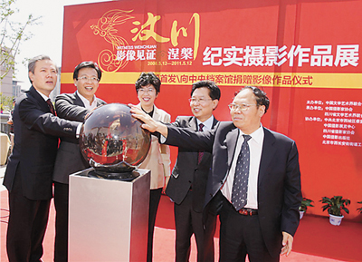 5月7日,由中国文联主办,中国摄协、四川省文联承办的“影像见证汶川涅槃”纪实摄影展在繁华的北京西单商业文化广场盛大开幕,同名画册首发式和向中央档案馆捐赠影像作品仪式同时举行。