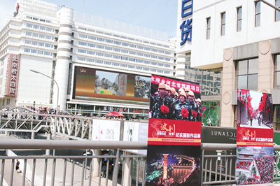 北京西单闹市900平方米大屏幕连续滚动播放200余幅(组)照片