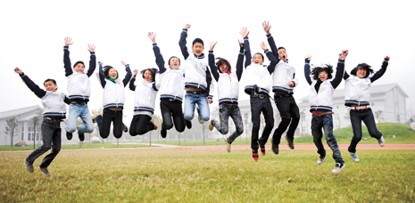 2010年,什邡市洛水中学的同学们在校园的操场上欢呼雀跃 廖文飞/摄