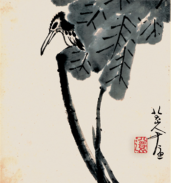 另一件系朱耷晚年所作的《书画合璧》。在这本九开册页中,可见露根欲倒的松树、闭目无言的八哥、有叶无花的素瓶,也可见无根的水仙、稀疏的竹叶,还有孤芳自赏的荷花、栖身破叶的寒虫,让人联想到作者出家避世的孤傲不羁。据了解,该册页的收藏者朱德裳,字师晦,堂名遂初,湖南湘潭人,早年曾以县试第一名与杨昌济、陈天华等官费留日,在东京加入同盟会,辛亥革命后曾任交通部佥事,又曾任《民主报》主笔,晚年埋头著述,工诗善书。册页后纸有其丙辰(1916年)三月跋文,系客江南时所得,珍赏之余,视为“传家重器”。朱氏后人回忆道,朱德裳与齐白石乡谊甚笃,故此册第四、六图上分别钤有“齐璜观”、“齐白石观”二印,说明素崇八大的白石老人曾予鉴赏。