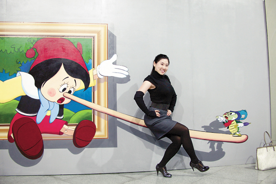 近日,根据毕加索、马蒂斯、雷诺阿等世界著名画家原作绘制的80幅“立体画”亮相吉林省吉林市博物馆。游客在观赏的同时还可以巧妙地与画中内容互动,尽享与艺术巨匠共同在幻想世界中遨游的乐趣。图为游客“坐”在匹诺曹的“长鼻子”上。