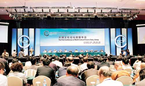 5月18日至19日,由太湖文化论坛、中国文联、江苏省人民政府、中国人民外交学会共同主办的太湖文化论坛首届年会在江苏苏州举办。中共中央政治局委员、国务委员刘延东出席开幕式并致辞。她强调,中国政府十分重视与世界各国开展文化交流,增进中国人民与各国人民之间的了解与友谊,愿与各国一道为建设和谐世界作出新贡献。