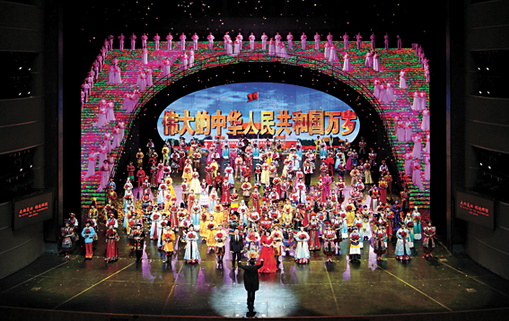 大型音乐舞蹈史诗《复兴之路》落幕之时,全体演员高歌《走向复兴》 杨 博/摄