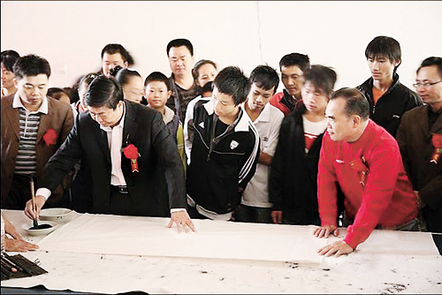 近日,广西书协第六届四次理事会暨“广西书法之乡”授牌仪式在鹿寨县举行。2010年,广西书协被中国书协授予“中国书法进万家活动先进集体单位”,在中国书协主办的首届篆书展、第二届西部展活动中,广西获奖、入展40人,是历年来成绩最好的一次。会上,广西文联主席、广西书协名誉主席潘琦将“广西书法之乡”牌匾颁给书法工作取得积极进展的鹿寨县。鹿寨成为第一个“广西书法之乡”,鹿寨县城南实验小学成为广西首个“兰亭书法学校”。