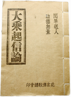 毛泽东所著《新民主主义论》的伪装书,该封面伪装题名为“大乘起信论”