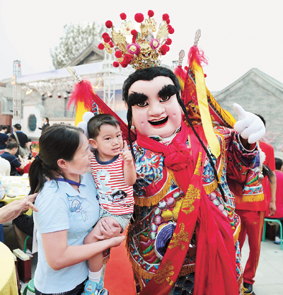 7月12日,在台湾夜市的开幕式上,市民与“电音三太子”合影。当日,首届前门台湾夜市在北京前门台湾映像阿里山广场开幕。游客不仅能品尝到地道的台湾小吃、奶茶,还能购买精美的服装、饰品等旅游纪念品。据悉,此次前门台湾夜市将延续两个月。