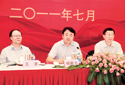 杨新力代表江苏省省委书记罗志军、省长李学勇向受表彰的中青年德艺双馨文艺工作者表示祝贺。他说,全省宣传思想文化战线要认真学习贯彻胡锦涛总书记在庆祝中国共产党成立90周年大会上的重要讲话精神,以高度的文化自觉和文化自信,以更大力度推进文化改革发展。江苏省委十一届十次全会把文化更繁荣纳入“两个率先”新标准新内涵,把实施文化建设工程作为“十二五”发展的一项重要举措。广大文艺工作者要牢记使命,更好弘扬先进思想文化,讴歌火热实践,更好繁荣创作生产,推出体现江苏特色水平的精品力作,更好服务基层群众,让人们共享文化改革发展成果。