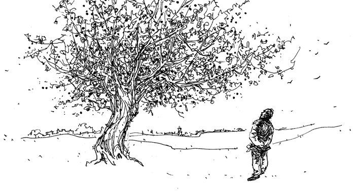 广场四周是一个环形的林带,全是新栽的树木。他一棵棵看过去,多是银杏、香樟等名贵树木,只是不见他的老榆树。他仔细寻了一遍,仍然不见踪影。他鼓起勇气问正在给树浇水的园工:“可有榆树?”那人看一眼老人,指指不远处一个角落,不屑地回道:“那儿好像有棵榆木疙瘩。”老人瞪了那人一眼,径自朝广场边上走去。