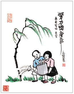 尽管目前面临许多困难,但大家们对未来的发展还是充满了信心。恒源祥集团总经理陈忠伟谈到为什么会举办这项活动时说:“这个百年漫画回顾展,可说是中国漫画史上的第一次,有条件的话,我们还想举办百年世界漫画展,与中国的对比一下,应该很有意思。同时,我相信画展也会吸引年轻观众,在物质生活达到一定水平后,人们更需要情感的体验,艺术的享受,生活的情调。”徐鹏飞说,中国美协的全国漫画展已举办了8届,国际漫画展举办了5届,推出了不少新人新作。要让漫画发挥它本来的作用,媒体要重视、配合,辟出专门的栏目;社会环境要宽松,对批评要理解、接受,要认识到批评的积极作用。尤其在当下,让漫画这一讽刺批评的艺术,为弘扬社会正气发挥更大的作用。 |