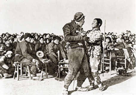 冼星海在指挥延安鲁艺合唱队排练《黄河大合唱》