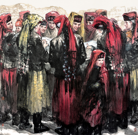 他的绘画取材广泛、不拘一格,紧密联系现实生活,随时代拓进。从表现西藏题材的《阳光》、表现新疆题材的《姐妹们》到表现新时期生活的《特区姑娘》,从《马六甲牛车》到《肯尼亚风情》,每一件作品、各一个人物都给观众留下了深刻的印象。这得益于他注重源于现实生活的深切体验和感受,注重对当代社会、不同地域的细心观察。新近创作的大型西藏题材绘画《祈福》更体现出他对我们伟大祖国和人民的深厚感情。