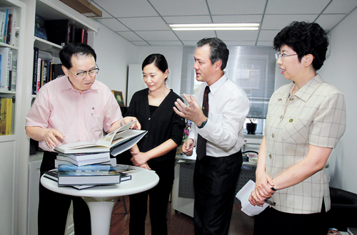 8月16日,中共中央政治局常委李长春到中国摄影家协会新会址调研 本报记者 孟祥宁 摄