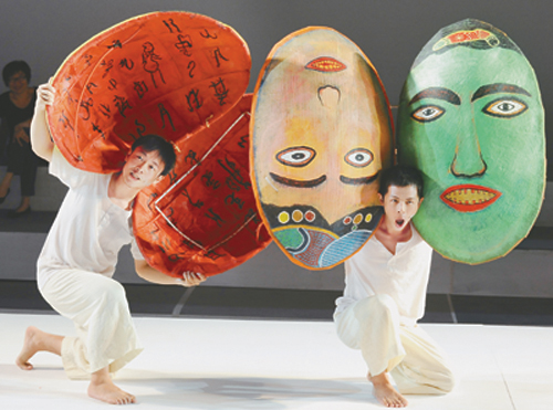8月16日至21日,台湾无独有偶工作室剧团在台北市松山文创园区演出《洪·通·计·画》。该剧以台湾画家洪通的图画世界与民俗文化的变形创造为题材,设计出15个小片段,诠释洪通的个性与其画中延伸想象的新世界。图为演员在排演《洪·通·计·画》。