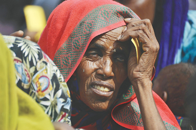 在索马里首都摩加迪沙的一处难民营,一位新到的因当地罕见旱灾而成为难民的妇女正在排队等待领取帐篷。新华社/法新