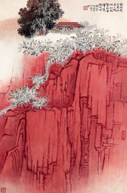 1957年江苏省国画院筹备处成立,钱松喦以其在专业上的特出成就被聘为该院画师,他激动地挥毫赋诗:“画师何幸作今身,旷代繁华我院新。莫对人民辜厚望,百花齐放力争春。”此后钱松喦把自己的山水画改革方向转向了革命历史题材,以此来歌颂党的革命事业的伟大卓越。为了深切感受革命历史,上世纪60年代他开始了万里壮游,拜谒革命圣地,考察历史文物,足迹遍及革命遗址:1960年游延安、重庆、韶山;1963年览广东海陆丰;1965年到井冈山、瑞金。对党的爱戴之情蓄积胸中,他禁不住“仰钦奋彤笔,挥洒曙光中”,创作了一批新中国美术史上的经典之作,《红岩》《万山红遍》《延安颂》《爱晚亭》《井冈山》《苍山如海 残阳如血》。然而正当钱松喦的艺术达到巅峰状态之时,文革到来,急转直下,钱松喦的艺术感恩鸣唱戛然而止。