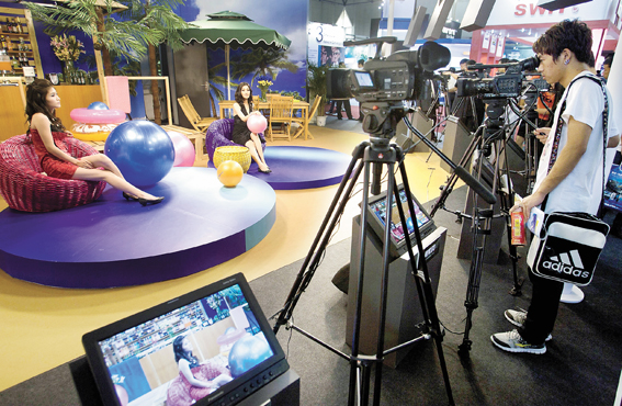 8月24日,第20届北京国际广播电影电视设备展览会在北京中国国际展览中心开幕。展览会全面展示了高清电视、立体电视、网络电视、手机电视、手持电视、移动电视、三屏合一等新媒体新业态的最新成果,共有四百多家中外厂商参展。图为观众在展览会上体验录像设备。