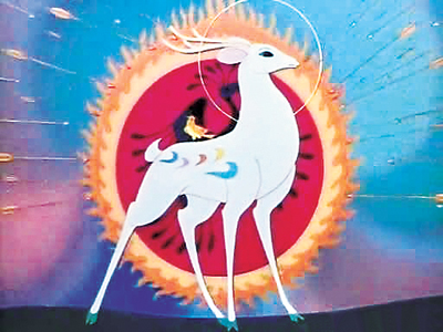 记得在“文革”结束后,美影厂恢复了创作生产,当时的责任编辑曹丽华老师向钱老推荐了编剧潘洁兹根据敦煌莫高窟257洞内壁画《鹿王本生》改编的剧本,钱老很有兴趣,多次把剧本拿到我所在的文学组,谦虚地请大家提意见。后来在钱老的带领下,还去了敦煌深入生活,收集素材,其传奇而富有哲理的故事加上唯美的画面,终于成就了几乎家喻户晓的动画片《九色鹿》,给无数孩子带来了童年的美好记忆。