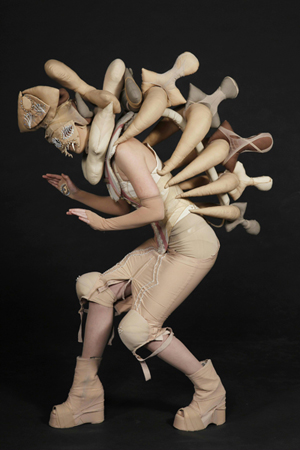 8月26日,一年一度的“世界可穿着艺术大赛”颁奖晚会在新西兰惠灵顿举行,图为获奖作品《藏在我骨头的影子里》,由荷兰设计师马约琳·范德法尔设计。