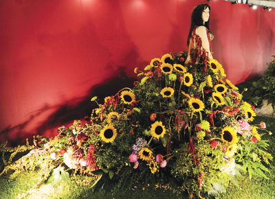 8月25日至29日,第58届图伦国际园艺展在奥地利著名的“鲜花之城”图伦举办。园艺师们用超过20万朵不同品种的鲜花以及道具,设计建造了取材于童话故事的场景。图为“模特”展示向日葵长裙。