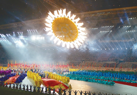 9月10日,第九届全国少数民族传统体育运动会开幕式。 新华社记者 焦卫平 摄