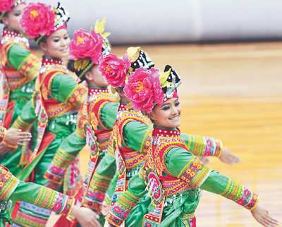 9月11日,云南代表团表演民族体育项目“打歌”。 新华社记者 梁 强 摄