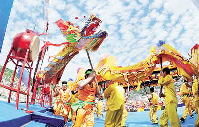 9月6日,浙江舟山嵊泗县黄龙乡渔民在开捕节上舞龙,祈福丰收。当日,浙江舟山嵊泗县黄龙乡举办一年一度的渔民开捕节,渔民们载歌载舞,向大海祈福,期盼丰产丰收。新华社发 吴琳红 摄 |