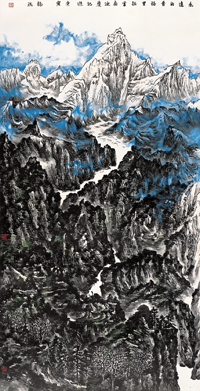 出生于1946年的龙瑞,曾先后就读于北京工艺美术学校和中央美院中国画系山水画研究生班,他是新中国培养、新时期造就的一位中国画家,他的艺术成长与艺术锤炼莫不得益于新中国文艺思想的洗礼。作为李可染的弟子,他曾起步于“写生山水”而为传统山水画注入现实主义的审美因素。作为新时期造就的一位中国画家,他从“写生山水”转向“构成山水”的研究与突破,为传统绘画注入了现代主义的审美情趣。但也恰恰在“构成山水”的现代性研究中,他深感中国传统文化的流失与断裂,而在文化精神上对于黄宾虹的邂逅,才真正形成他个人艺术探索中的一个新的起点,从而将他对于艺术现代性的理解转入博大精深的文化传统之中。其实,笔墨语言的自立是和抽象构成等同的一个现代性美学概念。这种现代性,都强调了艺术独立于再现审美对象之外,对于主体精神自觉、自主的追寻与凸显的独特审美价值和意义。它们的区别仅仅在于,一个偏重于媒介审美的探索,一个注重形式规律的发现。因而,也可以说,龙瑞在当代语境中对于纯粹笔墨精神的倡导与实践,是另一种方式的现代性表述。只不过这种现代性是对“写生山水”——现实主义新传统的一种调整与反拨,是对“构成山水”——西式现代主义新探索的一种民族化的转换与深化。笔者以为,“贴近文脉”、“正本清源”对龙瑞而言,仍然只是他艺术探索不断前行的一个过程。一个充满文化自信与自觉的集大成者,必定会在借鉴与回归中完成新的跨越。