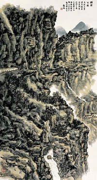 “笔墨”再次闯入了对此感到困惑的探索中国画现代性的画家视野。因为,中国画的“现代性”如果仅仅落脚于视觉形式,那么无疑也就消解了中国画自我生存的价值。或者,也可以说,中国画的“现代性”是必须以中国画的“笔墨”为根基、为前提的。“图式个性”只有与“笔墨个性”的有机结合,才能显示中国画“现代性”不同于西方“现代主义”的独特价值与魅力。基于这种认识,龙瑞提出了“贴近文脉”、“正本清源”的学术主张。显然,这个主张是在中国画获得现代性发展之后而提出的具有当下性的学术命题,它针对的是当时中国画因强化现代艺术语言与观念而弱化了传统艺术精神的普遍现象。龙瑞的这一主张,不仅清理的是当时中国画流行的“幻象”、“直觉”与“结构”的现代性探索,而且清理的是自上世纪五六十年代就兴起的具有现实主义精神的“写生山水”。而20世纪没有受到这两种艺术思潮影响的黄宾虹的山水画理念,则成为他“正”中国画之路的“本”和“贴”中国画学之“脉”的典范。他在20世纪上半叶形成中国山水画巅峰的黄宾虹的艺术世界找到了回归的“本源”。