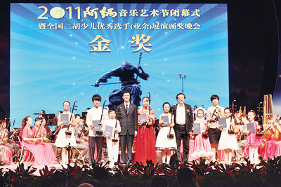 现在社会上孩子学音乐的费用着实不菲,能够让这个领域顶级的专家看到自己的表现、为自己分析优势和不足对于很多孩子来说是遥不可及的。由中国音协,江苏省文联,江苏省无锡市崇安区委、区政府主办,中国音协二胡学会、江苏省音协承办的此次展演不仅不收取任何费用,还为孩子们邀请到了著名二胡演奏家闵惠芬任评委会主任;中国音协副主席努斯来提·瓦吉丁、二胡演奏家许讲德任评委会副主任;邓建栋、刘光宇、刘尊海、朱昌耀、何山、陈春园、段永强、胡志平、赵夺良、赵寒阳、郭君、谢林义任评委会委员。这样的平台给了所有爱好音乐的孩子平等、公正的机遇,让所有有潜质的孩子都有了被发现、被挖掘的机会。不仅如此,主办方还力求让选手们亲身体会到中国民族音乐的精髓。展演闭幕式上,邓建栋演奏的《洪湖主题随想曲》、古筝演奏家王中山的《望秦川》及琵琶演奏家吴玉霞的《彝族舞曲》、笛子演奏家唐俊乔的《大青山下》等让观众感受到了民族音乐的无穷魅力;闵惠芬与所有获奖的选手一同演绎的《光明行》更让全场观众为之动容。在展演期间举办的大师班上,专家们还根据展演中出现的问题为选手们做了直观的分析、演示和建议。