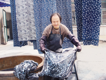 不过,时过境迁,随着现代印染工业的兴起,蓝印花布——曾经的潮流——不可避免地被边缘化,甚至开始消亡,沦为被保护的对象。在抢救民间文化成为一项共识的今天,有一位蓝印花布的“守护者”不能不提,那就是吴元新。