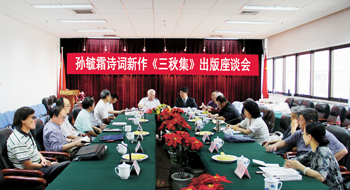 孙毓霜专攻并善作古体诗词,兼及新诗,出版了《碎石集》《砾石集》《砂石集》和《孙毓霜诗词选》等诗词著作。《三秋集》是孙毓霜最新的诗歌作品结集,由大众文艺出版社出版,全面记述了作者从工作岗位退下后的生活与创作状况。座谈会上,与会者就《三秋集》的艺术特色进行了深入探讨与交流。