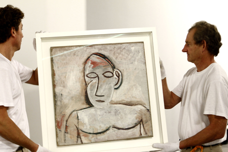 作为第13届中国上海国际艺术节的重要参展项目之一,“2011毕加索中国大展”将于10月18日开展。本次展览的全部真迹涵盖了毕加索一生8个时期的不同创作,同时展出的还有50幅毕加索的生活照片等。据了解,本次展览全部展品的保险金额达数十亿元人民币。近日,62件来自法国巴黎毕加索博物馆的毕加索真迹在上海世博会中国馆逐一开箱亮相。图为工作人员开箱取出毕加索的作品。
