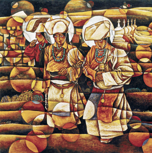 可以说,西藏画家在表现故土时,已超越表象写真,对之有更多形而上的思考,努力挖掘着高原的精神含量。20世纪80年代以来,西藏画家不仅在本地举办画展,更多次以“西藏画派”的身份在国内外举办展览,进行艺术交流。全球范围内的“西藏热”使西藏画家受到了越来越多的关注,越来越多的机构在支持着西藏文化走向世界,一些民间力量,在宣传西藏当代艺术中也起到很重要的作用,为我们了解西藏当代油画艺术创造了条件与机会。 |