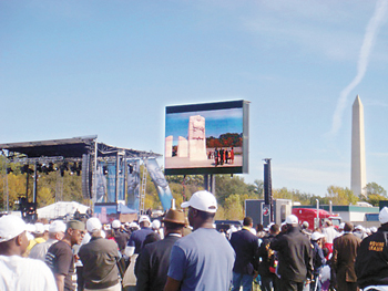 美国当地时间10月16日,美国黑人民权运动领袖马丁·路德·金纪念园揭幕仪式在美国华盛顿国家广场举行。美国总统奥巴马与几十名美国政要、马丁·路德·金家属以及社会各界人士五万多人参加揭幕仪式,仪式现场气氛热烈。