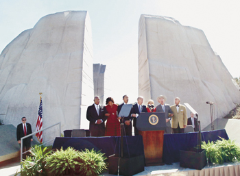 马丁·路德·金雕像同时正式向世人亮相。雕像高10米,由159块石头无缝衔接而成。整个作品分为《绝望之山》和《希望之石》两部分,取自马丁·路德·金的名言:“我希望,从绝望之山中间劈出一块希望之石。”这里特别刊发新华社和雷宜锌工作团队为本报从现场发来的一组图片,以飨读者。