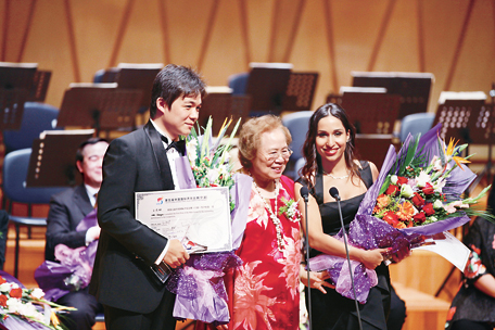 男声部冠军王传越(中国)、女声部冠军斯维特兰娜·卡希安(俄罗斯)与郭淑珍(中)在颁奖音乐会上
