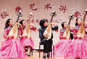 吴玉霞(中)与学生们合奏《唱支山歌给党听》 高 尚 摄