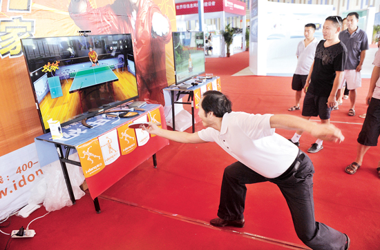 8月17日,“第六届亚洲青年动漫大赛暨中国(贵阳)卡通艺术活动”在贵阳市国际会展中心开幕,来自48个国家和地区的31600部(幅)作品参加本次大赛。图为一名参观者在现场体验电子游戏的互动技术。