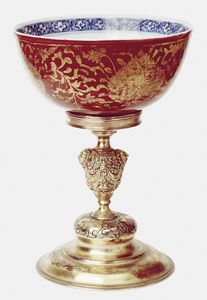 与大量输入欧洲后成为寻常物件的其他商品不同,最早进入欧洲的中国瓷器都是稀世珍品,它们经常被加装银质配件凸显价值、提高地位,并获得新的功能,如碗可能被改造成杯子,罐可能被改造成啤酒杯。此次展出的藏品中有一件产自中国江西景德镇的德国加装银支架杯,就是在慕尼黑加装了支架,杯体上的金饰是将切割的金箔用漆粘合剂粘贴在其表面而成,当时它与其他异域珍品一起出现在欧洲王室和贵族特制的陈列展柜或住所内。正如英国国立维多利亚与艾伯特博物馆馆长马丁·罗特所言:“本次展览将带领中国观众探索一段至今仍然隐秘的历史——西方世界对中国瓷器的狂热追求、中国的外销瓷热潮以及中国瓷器对欧洲制瓷业的巨大影响。”