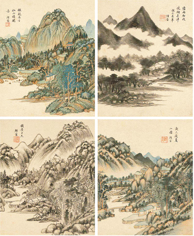 王时敏1647年作品《仿各家山水册册页(十开)》(局部)。