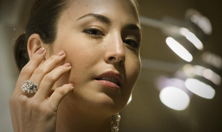 11月23日,模特展示一枚2.07克拉梨形浓彩蓝钻石及2.33克拉梨形浓彩粉红钻石戒指,估价超过1700万港币。当日,罗芙奥艺术集团宣布将于11月25日在香港举行秋季拍卖会,拍卖近190件艺术品,总估价约2亿6300万港币。(新华社记者 吕小炜 摄)
