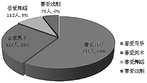 喜爱不同艺术门类的大学生人数及占被测总人数比例分布图