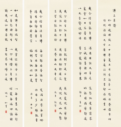 弘一的书法作品一直是拍卖市场的热点,2011年匡时春拍“辛亥百年名人书法专场”中,19件弘一书法作品全数成交,总成交额5000多万元。该场成交前10名的作品中,前9名均为弘一书法作品,其中楷书《佛三身赞》一经亮相,便引起藏家的高度关注,多番竞价后,最终以759万元的成交价夺得该场冠军。