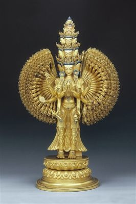 在展览中亮相的“镇馆之宝”:十一面千手千眼观音菩萨鎏金铜像