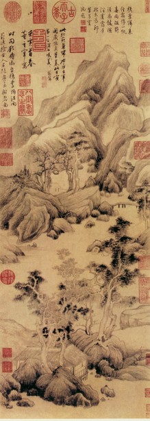 董其昌(1555—1636)明代书画家。字玄宰,号思白、香光居士。华亭(今上海松江)人。万历十七年进士,授翰林院编修,官至南京礼部尚书,卒后谥文敏。擅画山水,师法董源、巨然、黄公望、倪瓒,笔致清秀中和,恬静疏旷;用墨明洁隽朗,温敦淡荡;青绿设色古朴典雅。以佛家禅宗喻画,倡“南北宗”论,为“华亭画派”杰出代表。其画及画论对明末清初画坛影响甚大。书法出入晋唐,自成一格,能诗文。存世作品有《岩居图》《秋兴八景图》《昼锦堂图》等。著有《画禅室随笔》《容台文集》等,刻有《戏鸿堂帖》。