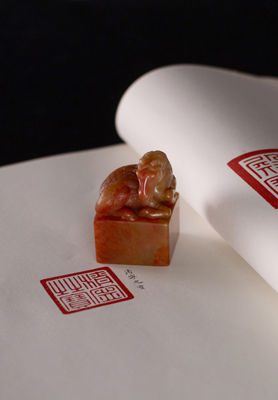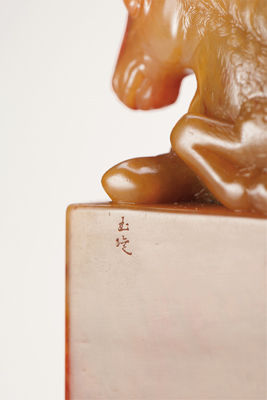此方石章乃清康熙之御用,印文刻篆书朱文“清宁之宝”四字。石章精选上等“善伯石”为材,材质灵透温润、宛若珠翠、纹理绛晕、有如珊瑚;印钮用精巧细腻的手法,雕刻了一匹栩栩如生的卧马,运刀神妙、盘礴尽致、堪称一绝。清代帝王的玺印,近年以来一直是艺术品市场上的“龙睛”之物。一方面,因其珍稀鲜有;另一方面,器物虽小但是却具有重要的文化与历史价值。所谓:“画龙点睛”,不在大小,而在出彩也。在皇帝委任翰林院文臣名宿所编辑的“庋藏总集”如《西清古鉴》、《石渠宝笈》、《秘殿珠林》、《天禄琳琅》的著录中,帝王的印章也是作为唯一的“证物”而存在的。凡在册的藏品,一定于书画卷册、传世善本上,钤有相应的印章。正因为如此,这些印章和它们遗存下的“钤本”印迹,才成为后人为艺术品鉴定的重要依据之一。而这些印章的实物,历经兵燹和日月风雨的磨砺,如能保存至今,更具有材质、钮制、雕镂工艺之美、篆刻文字之美的艺术面貌,是历史文化与艺术遗存的绝妙合一。