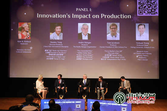 当天,中国文联主席团委员、北京大学艺术学院院长王一川,知名导演唐季礼、冯小宁,中影海外推广公司总经理谷国庆,中国巨幕总经理陈京民,华狮总裁蒋燕鸣等与好莱坞资深制片人安德鲁·摩根、前21世纪福克斯总裁汤姆·雅各布森、《狮子王》导演罗伯·明可夫等好莱坞资深影视人展开研讨。