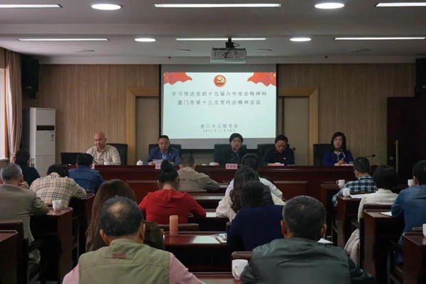 厦门市文联召开党组(扩大)会议暨文联系统工作会议传达学习党的十九届六中全会精神。会议要求,要迅速把思想和行动统一到学习贯彻全会精神上来,以更高政治站位和政治自觉,深入学习、深刻理解、准确把握全会精神的丰富内涵与核心要义,从党的百年奋斗历程中不断汲取智慧和力量,切实把学习成果转化为推进高质量发展的强大动力。