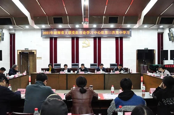 湖南省文联召开党组(扩大)会议暨党组理论学习中心组集中学习,深入学习贯彻党的十九届六中全会精神。会议指出,要自觉提高政治站位,全面深入学习,切实把思想和行动统一到全会精神上来。