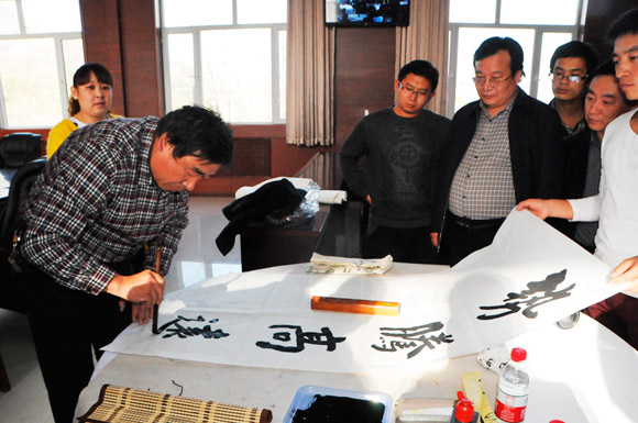 当天下午,在该公司会议室,中国书画艺术家协会会员,山西书法家协会会员,山西省产业(企业)文联副主席,中国煤炭书法家协会副主席,中国煤炭文联理事,中国煤炭作协理事,潞安集团文联主席、书协主席闫接囤一行,首先代表中国煤矿文联志愿者向该公司赠送了文学、书画等书籍,并同中国煤矿书法家协会理事、山西省书法家协会会员、潞安集团书协副主席王和岐、潞安集团书协副主席米平泽等著名书法家,当场在该公司会议室挥毫泼墨,将100余幅遒劲有力、寓意深远的书法作品赠送给该公司广大干部职工,不仅为该公司广大干部职工带来了丰富的文化食量,也充分表达了中国煤矿文联和集团公司对整合矿井的亲切关怀,把温暖送到了整合矿井员工的心坎上,传递的能量触手可及。黑龙煤业干部职工在得到了书法艺术熏陶,感受到了书法艺术的无尽魅力后,倍受鼓舞,干劲倍增,大家纷纷表示,要此为契机,再接再厉,在黑龙煤业的建设发展中,立足本职、扎实奉献,再创佳绩,再立新功,为潞安“三地一新”建设做出应有的贡献。(王建兴)